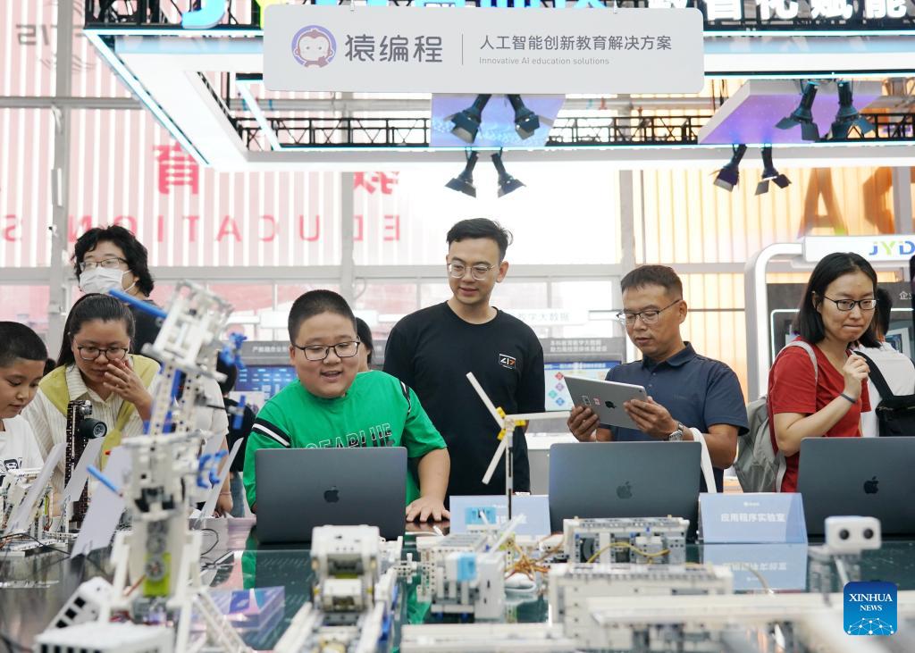 Los niños intentan codificar trabajos de hardware inteligente durante la Feria Internacional de Comercio de Servicios de China (CIFTIS) 2023 en el Parque Shougang en Beijing, capital de China, el 3 de septiembre de 2023. [Foto/Xinhua]