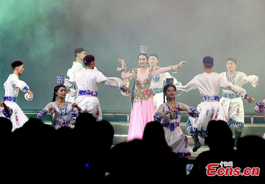 Una actuación se lleva a cabo en un mercado nocturno en la prefectura de Aksu, región autónoma uigur de Xinjiang, el 4 de septiembre de 2023. (Foto/Servicio de Noticias de China)