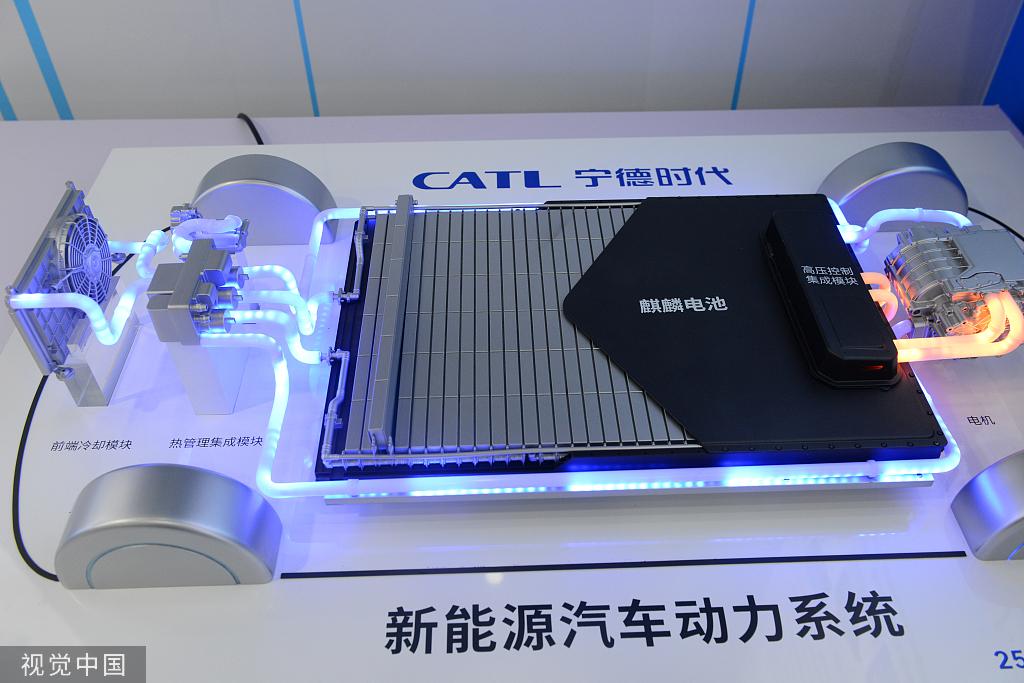 Una batería Qilin en el estand de CATL en una exposición en Fuzhou, provincia de Fujian, el 20 de junio de 2023. [Foto/VCG]