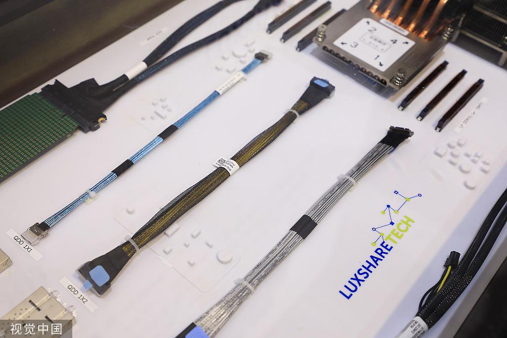 Los productos de Luxshare Precision Industry se exhiben en una exposición en Shanghai, el 11 de julio de 2023. [Foto/VCG]