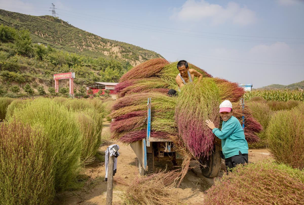 Agricultores de Shanxi recogen una cosecha abundante de la planta herbácea Kochia scoparia