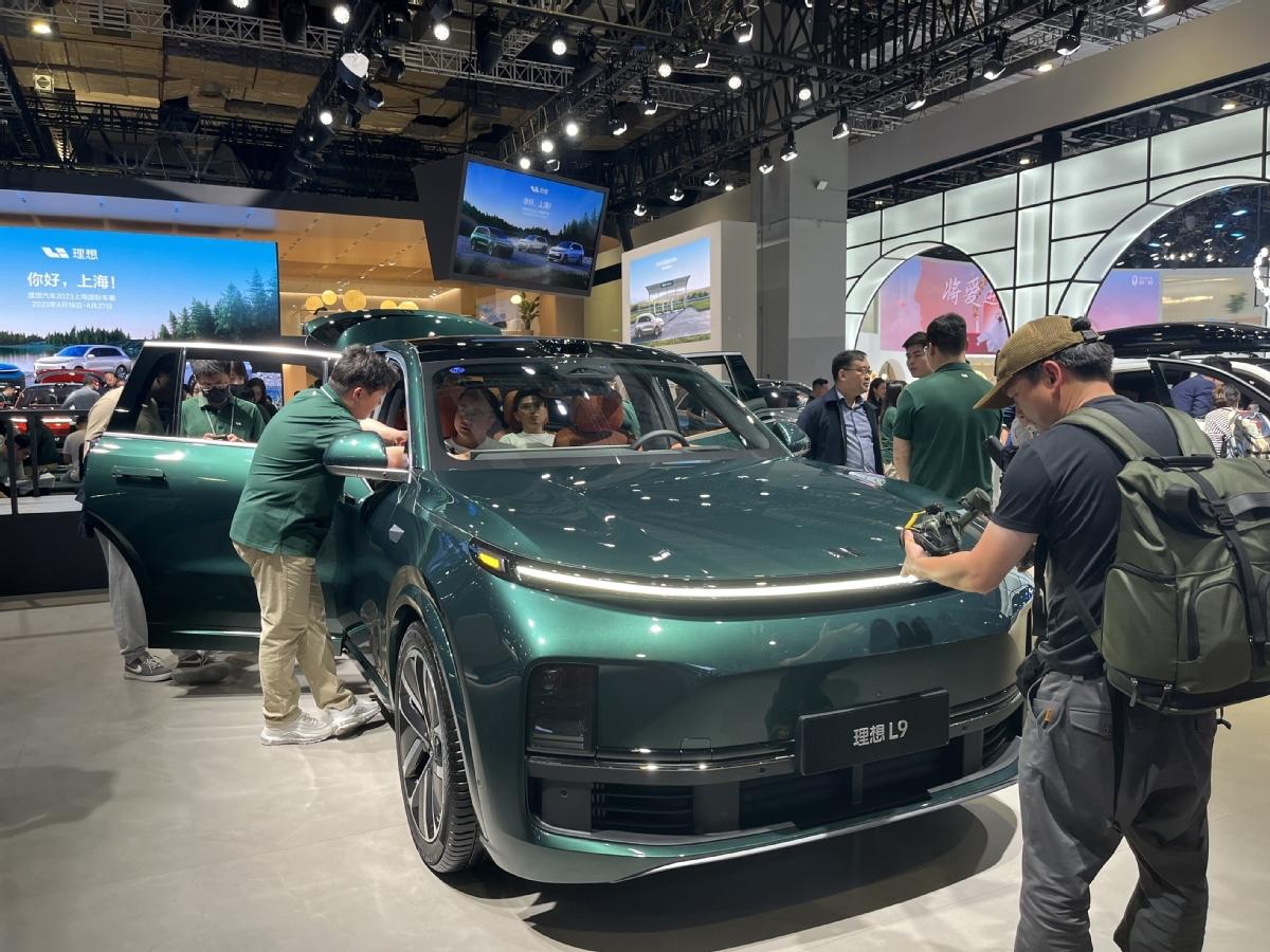 Los clientes echan un vistazo más de cerca al modelo L9 de Li Auto en el Salón del Automóvil de Shanghai 2023. [FOTO de CAO YINGYING / CHINA DAILY]
