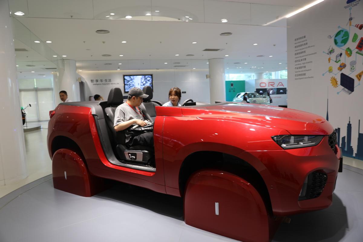 Los visitantes prueban la tecnología de conducción inteligente basada en 5G en el Centro de Investigación y Desarrollo Haval de Great Wall Motor en Baoding, provincia de Hebei, norte de China, el 20 de julio de 2023. [Foto de Ma Qing/chinadaily.com.cn]