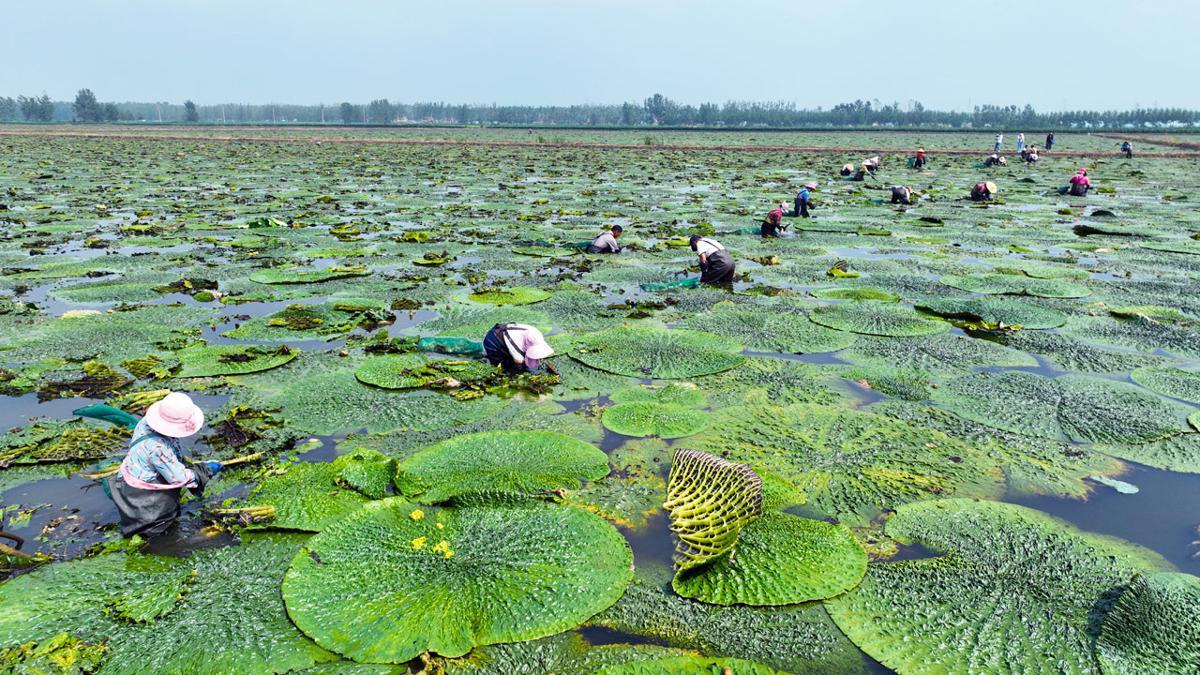 Agricultores en Jiangsu cosechan jitoumi o semillas de la fruta gorgona