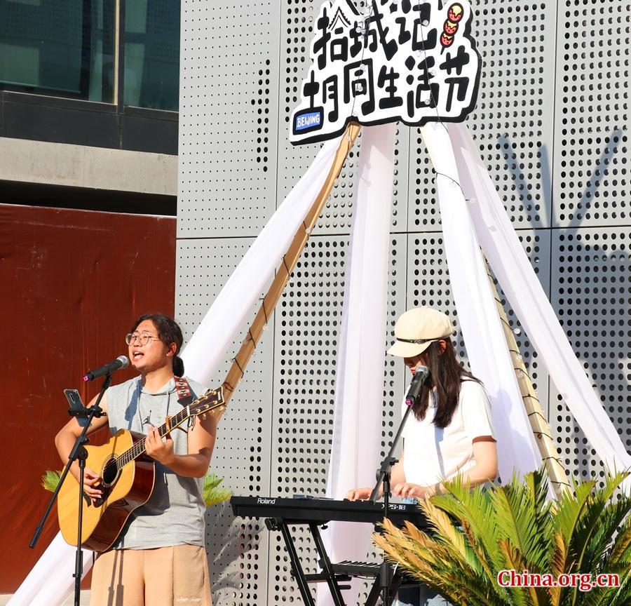 Una banda toca en la plaza al aire libre del área del Templo Longfu, distrito de Dongcheng, Beijing, el 15 de septiembre. [Foto de Wang Ziteng/China.org.cn]