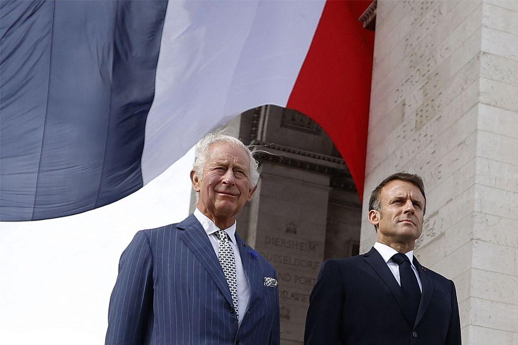 Bajo el agradable cielo azul de París, el anfitrión Emmanuel Macron y su esposa dieron la bienvenida en la tarde a la pareja real en el Arco del Triunfo, iniciando así una visita de tres días en el país galo.
