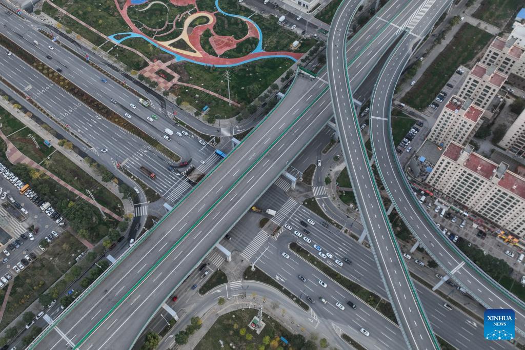 Esta foto aérea tomada el 17 de octubre de 2023 muestra una vista de las carreteras de la Nueva Área de Lanzhou, en la provincia de Gansu, en el noroeste de China. En 2012, la Nueva Área de Lanzhou fue aprobada por el Consejo de Estado como la quinta zona de desarrollo económico especial a nivel nacional, siendo también la primera nueva área de desarrollo a nivel estatal en el noroeste de China.