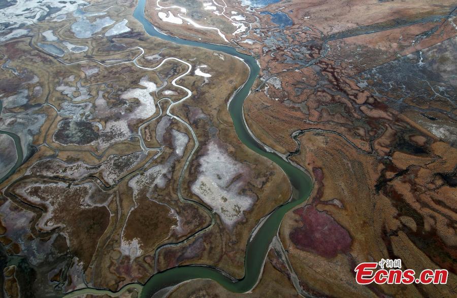 Un humedal de pradera de meseta muestra un paisaje vibrante otoñal en el distrito de Damxung de Lhasa, en la región autónoma de Xizang (Tíbet), suroeste de China, el 24 de octubre de 2023. (Foto: Servicio de Noticias de China/Li Lin)