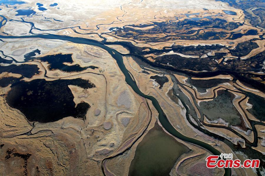 Un humedal de pradera de meseta muestra un paisaje vibrante otoñal en el distrito de Damxung de Lhasa, en la región autónoma de Xizang (Tíbet), suroeste de China, el 24 de octubre de 2023. (Foto: Servicio de Noticias de China/Li Lin)