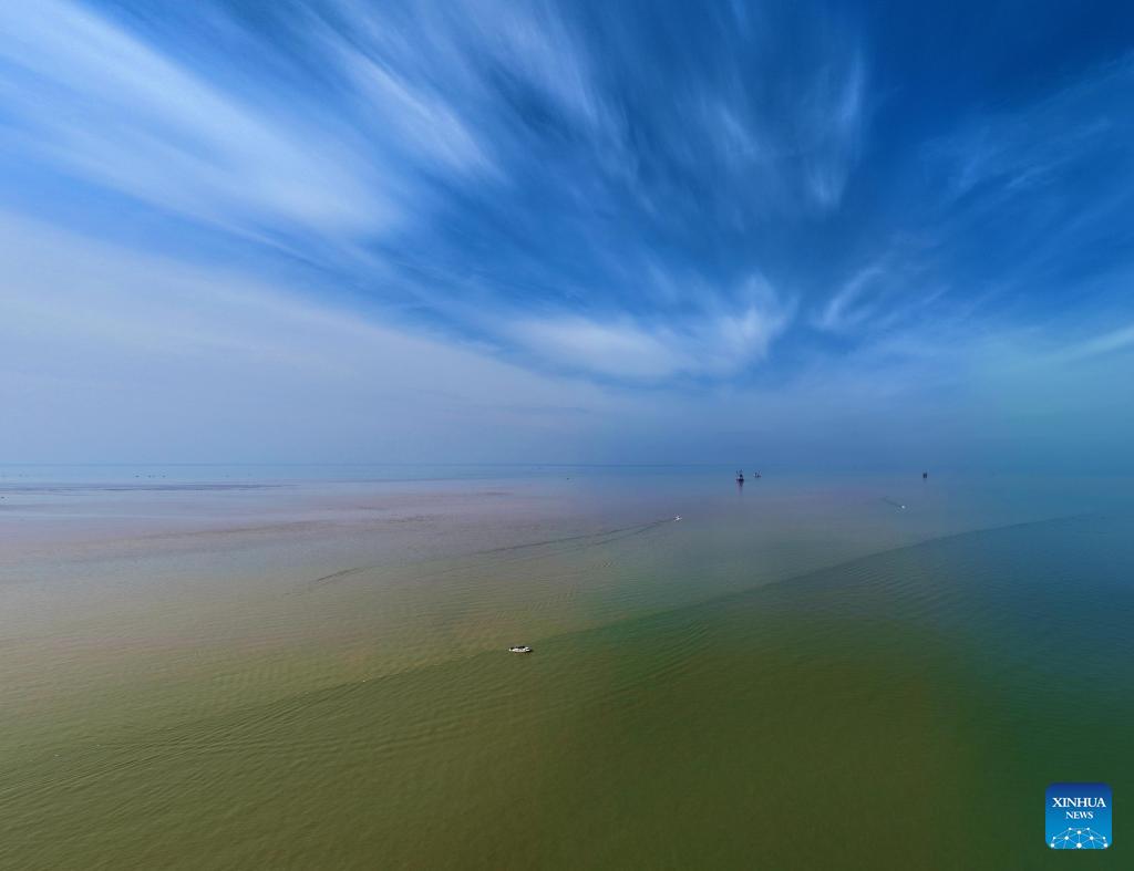 Esta foto aérea tomada el 12 de octubre de 2023 muestra el estuario del río Amarillo en Dongying, provincia de Shandong, en el este de China. El río Amarillo, el segundo río más largo de China, se origina en la meseta Qinghai-Tíbet y desemboca en el mar de Bohai desde la ciudad de Dongying. (Xinhua/Xing Guangli)