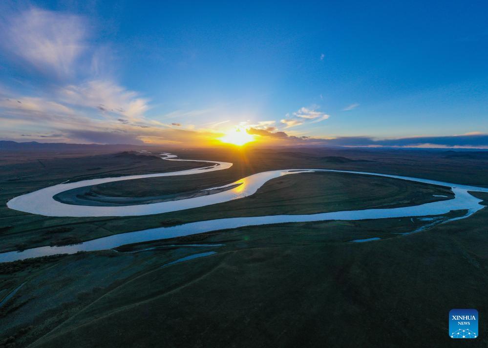 Esta foto aérea tomada el 17 de octubre de 2022 muestra una sección del río Amarillo en el distrito de Ruoergai de la prefectura autónoma tibetana-qiang de Aba, provincia de Sichuan, suroeste de China. El río Amarillo, el segundo río más largo de China, se origina en la meseta Qinghai-Tíbet y desemboca en el mar de Bohai desde la ciudad de Dongying. (Xinhua/Wang Xi)