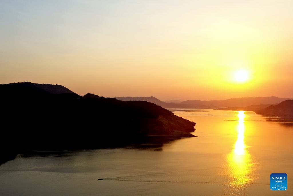 Esta foto aérea tomada el 25 de julio de 2019 muestra una vista del embalse de Xiaolangdi en el río Amarillo, en la provincia central china de Henan. El río Amarillo, el segundo río más largo de China, se origina en la meseta Qinghai-Tíbet y desemboca en el mar de Bohai desde la ciudad de Dongying. (Xinhua/Li Jianan)