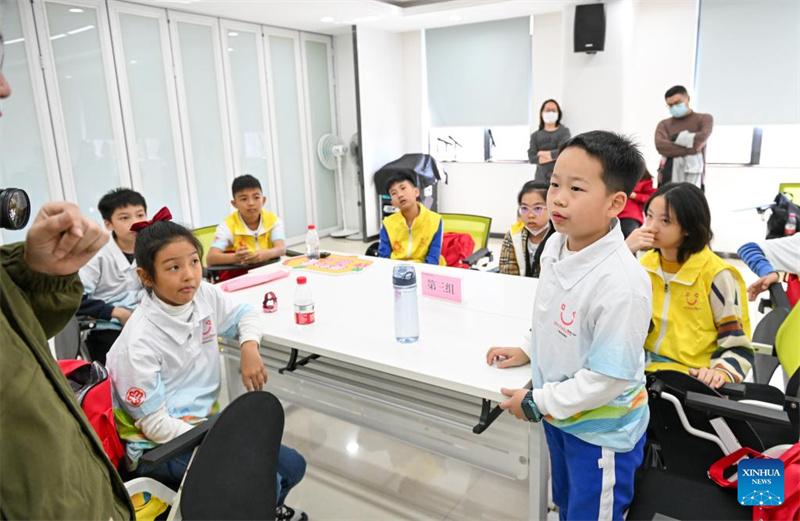 Miembros de una organización de deliberación infantil participan en un debate sobre medidas y comportamientos favorables a los niños en el centro de actividades para mujeres y niños del distrito de Luohu en Shenzhen, provincia de Guangdong, en el sur de China, el 18 de noviembre de 2023. Shenzhen lanzó las primeras directrices de China para construir una ciudad amigable para los niños hace ocho años. Desde entonces, la ciudad ha puesto en marcha una serie de medidas que encabezan la construcción hacia este objetivo.
