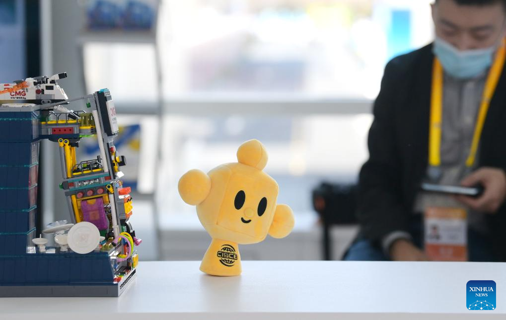 Una producto de la mascota de la Exposición Internacional de la Cadena de Suministro de China (CISCE) fotografiada en la exposición celebrada en Beijing, capital de China, el 29 de noviembre de 2023. La CISCE abrió sus puertas en Beijing, siendo la primera expo en el mundo dedicada a promover la colaboración industrial y de la cadena de suministro. (Xinhua/Li He)