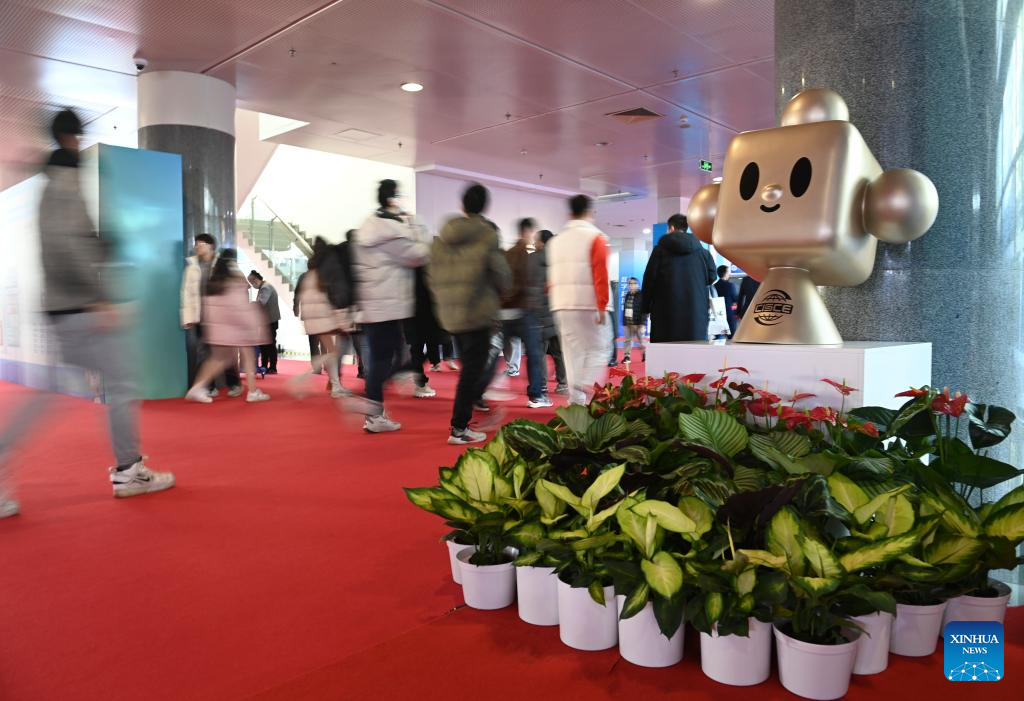 La mascota de la Exposición Internacional de la Cadena de Suministro de China (CISCE) se ve en la exposición celebrada en Beijing, capital de China, el 29 de noviembre de 2023. La CISCE abrió sus puertas en Beijing, siendo la primera expo en el mundo dedicada a promover la colaboración industrial y de la cadena de suministro. (Xinhua/Cai Xiangxin)