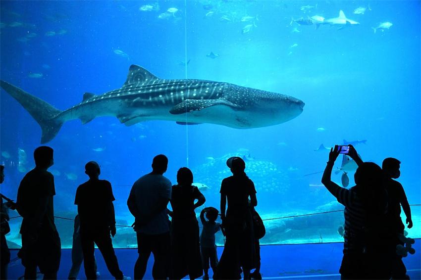 Turistas toman fotos de un tiburón en Zhuhai Chimelong Ocean Kingdom, provincia de Guangdong, 18 de septiembre de 2023. [VCG]