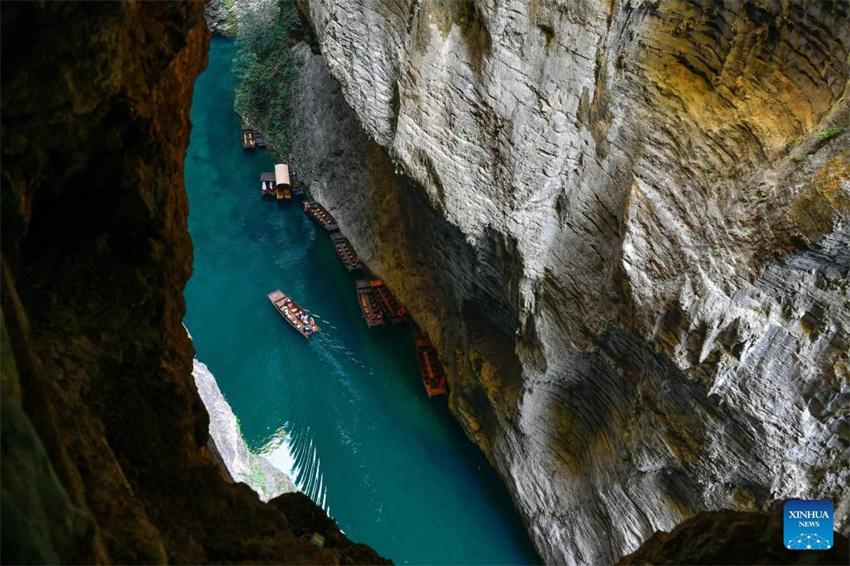 Turistas disfrutan de la vista del cañón de Pingshan en Hefeng, provincia central china de Hubei
