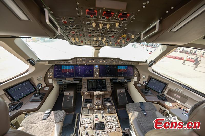 Una vista interior de la cabina del piloto del avión C919 de cosecha propia de China en el Aeropuerto Internacional de Hong Kong, el 13 de diciembre de 2023. (Foto: China News Network/Chen Yongnuo.)