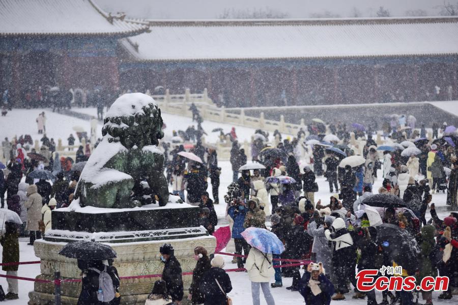 Los turistas visitan el Museo del Palacio bajo la nieve en Beijing, el 13 de diciembre de 2023. (Foto proporcionada a China News Service.)
