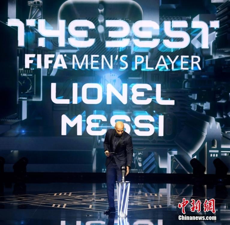 Thierry Henry recoge el premio en nombre de Lionel Messi, quien ganó el premio The Best al Jugador de la FIFA, en la entrega de premios The Best FIFA Football Awards celebrada en el Apollo Theatre Hammersmith, Londres, Reino Unido, el 16 de enero de 2024. (Foto/VCG)