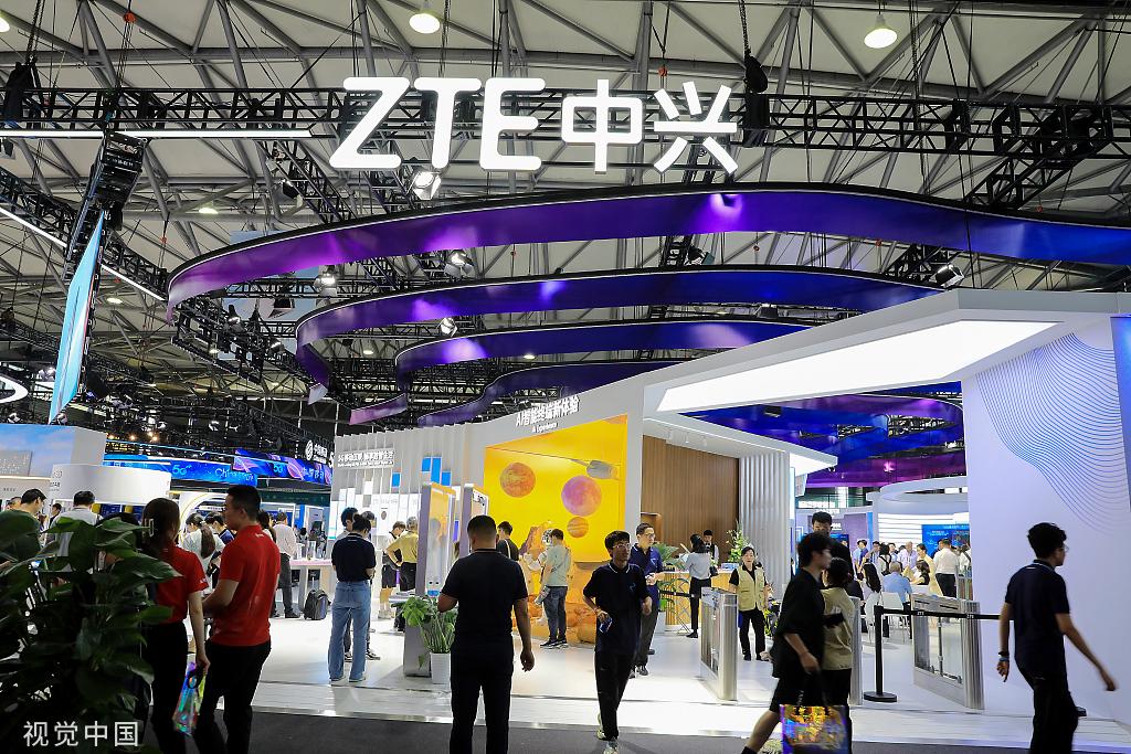 Estand de ZTE en una exposición celebrada en Shanghai, el 21 de julio de 2023. [Foto/VCG.]