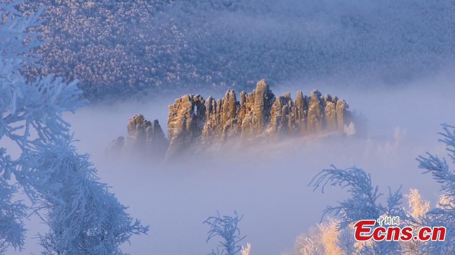Espectacular paisaje de escarcha en el bosque de piedra de Asihatu en el Estandarte Keshiketeng de Chifeng, en la región autónoma de Mongolia Interior del norte de China. (Foto: Servicio de Noticias de China/Liu Hai.)