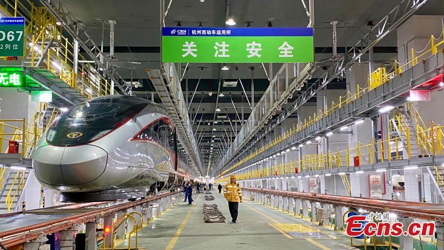 El servicio de mantenimiento de trenes de alta velocidad está en marcha antes de la temporada alta de viajes por la Fiesta de la Primavera a fin de garantizar la seguridad de sus operaciones.