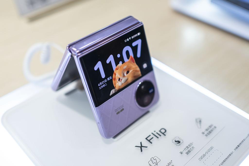 El X Flip de Vivo se exhibe en Shanghai el 21 de abril de 2023. [Foto/VCG.]