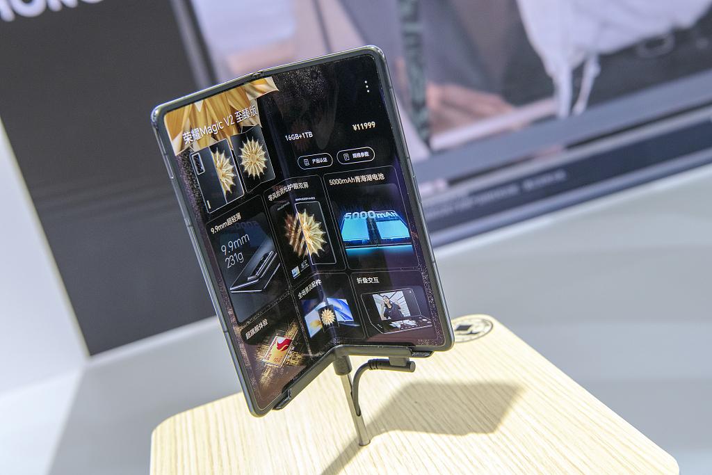 Magic V2 de Honor en exhibición en Guangzhou, provincia de Guangdong, el 10 de noviembre de 2023. [Foto/VCG.]