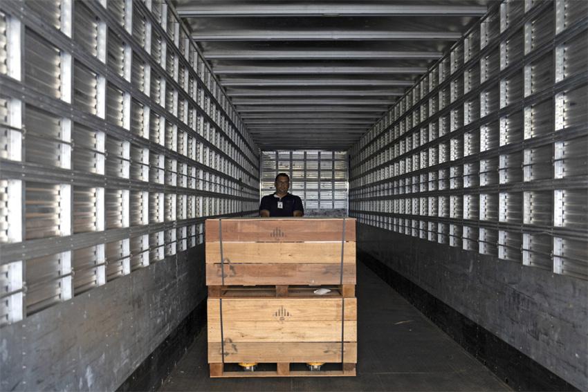 Un miembro del personal de BYD carga el paquete de baterías en un contenedor en la planta de baterías de la compañía ubicada en Manaus, estado de Amazonas, Brasil, el 12 de marzo de 2024. [Xinhua]