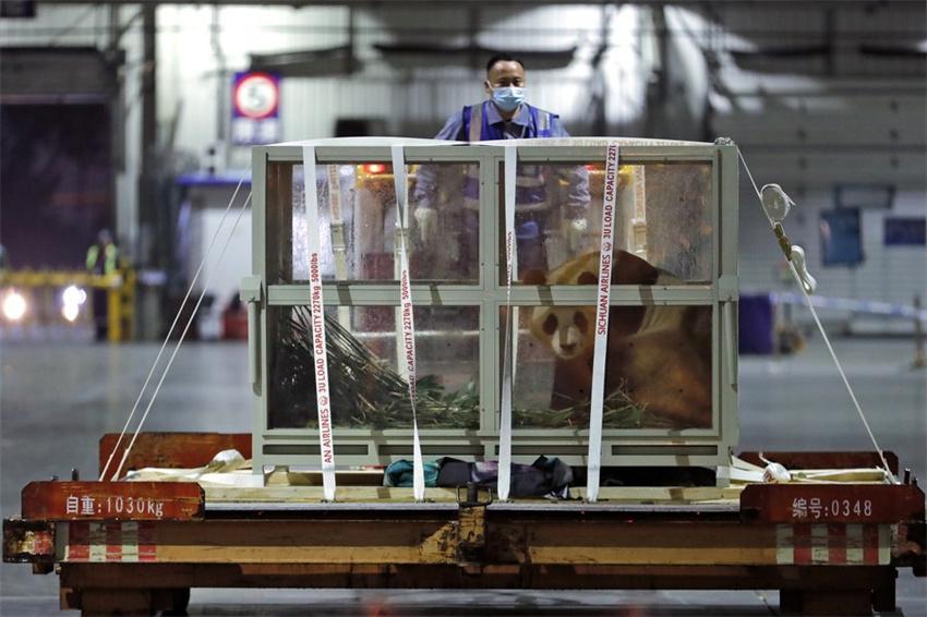 El vuelo fletado que transportaba el panda gigante Fu Bao aterrizó en Chengdu, capital de la provincia de Sichuan, en el suroeste de China, a las 19:22 horas de hoy miércoles.