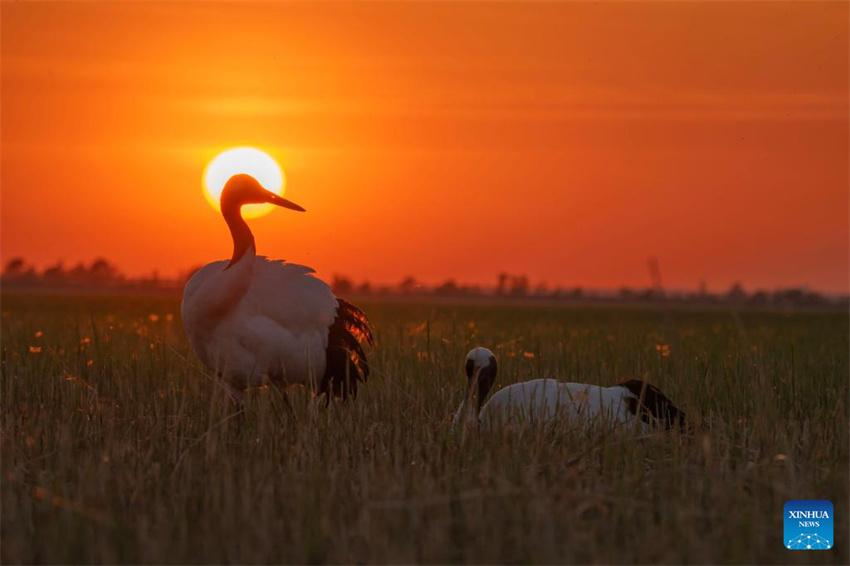 Las grullas de corona roja entran en la temporada de reproducción en el noreste de China