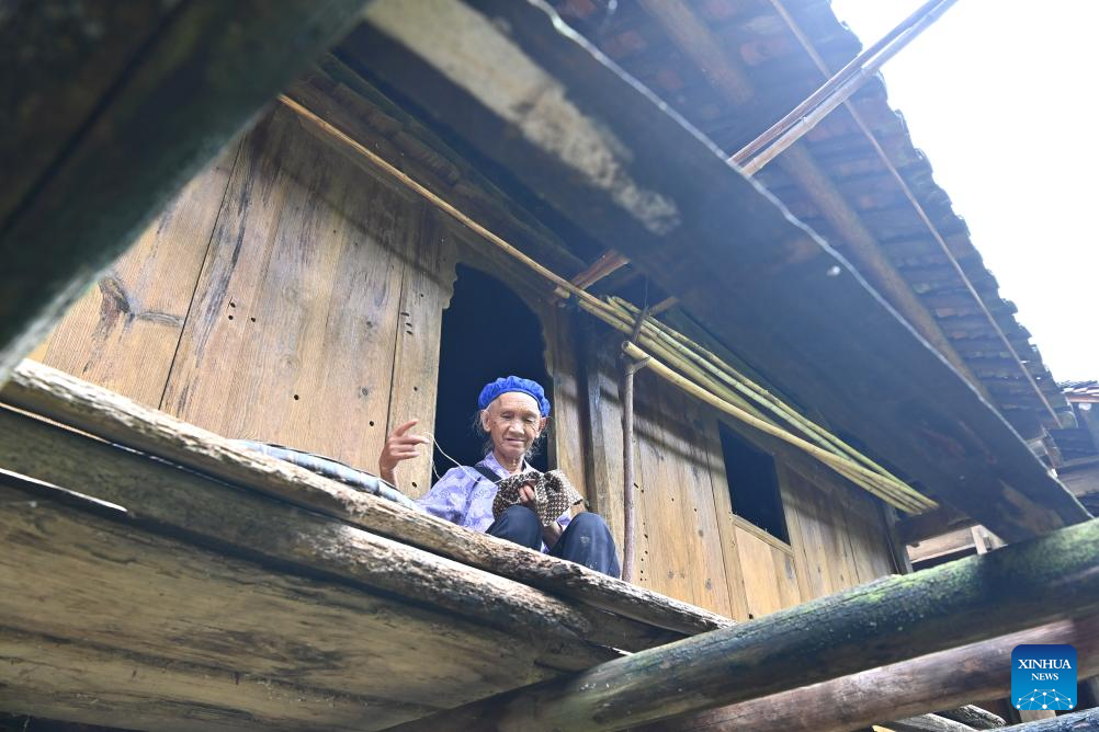 Una aldeana hace labores de costura dentro de su edificio de madera Ganlan en la aldea de Pingliu, en el distrito de Longlin, en la región autónoma de la etnia zhuang de Guangxi, en el sur de China. La aldea de Pingliu, con una historia de más de 200 años, es una aldea de la minoría étnica zhuang que limita con las provincias vecinas de Yunnan y Guizhou. Entre las tradiciones y costumbres bien conservadas de dicho grupo étnico, la instalación de vivienda local, el edificio Ganlan, una arquitectura residencial con estructura de madera sobre pilotes, es la más distintiva.