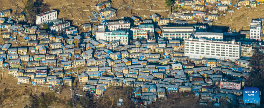 Una foto aérea tomada por un dron el 13 de diciembre de 2024 muestra una vista del municipio de Zhentang, en el distrito de Dinggye de Xigaze, en la región autónoma de Xizang, en el suroeste de China. (Xinhua/Tenzin Nyida.)