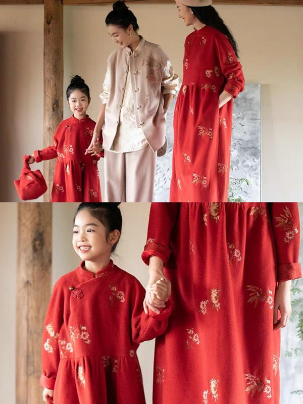 Con delicados bordados de flores, los vestidos de lana roja denotan estilo, calidez y comodidad.