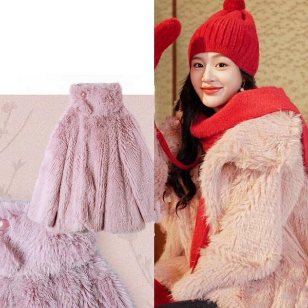 El rosa siempre va de la mano con el rojo para otorgarle un encanto femenino y la imitación de pelo es respetuosa con los animales.