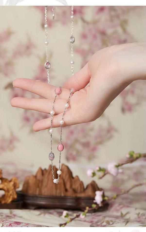 No hay nada más femenino que piedras rosas y perlas brillantes. Este collar largo puede hacer la diferencia en tu estilo de año nuevo.