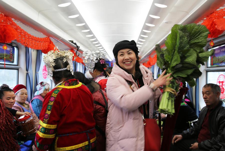 Una “gala de aldea” de la Fiesta de la Primavera se celebra en un tren de Guizhou, en el suroeste de China