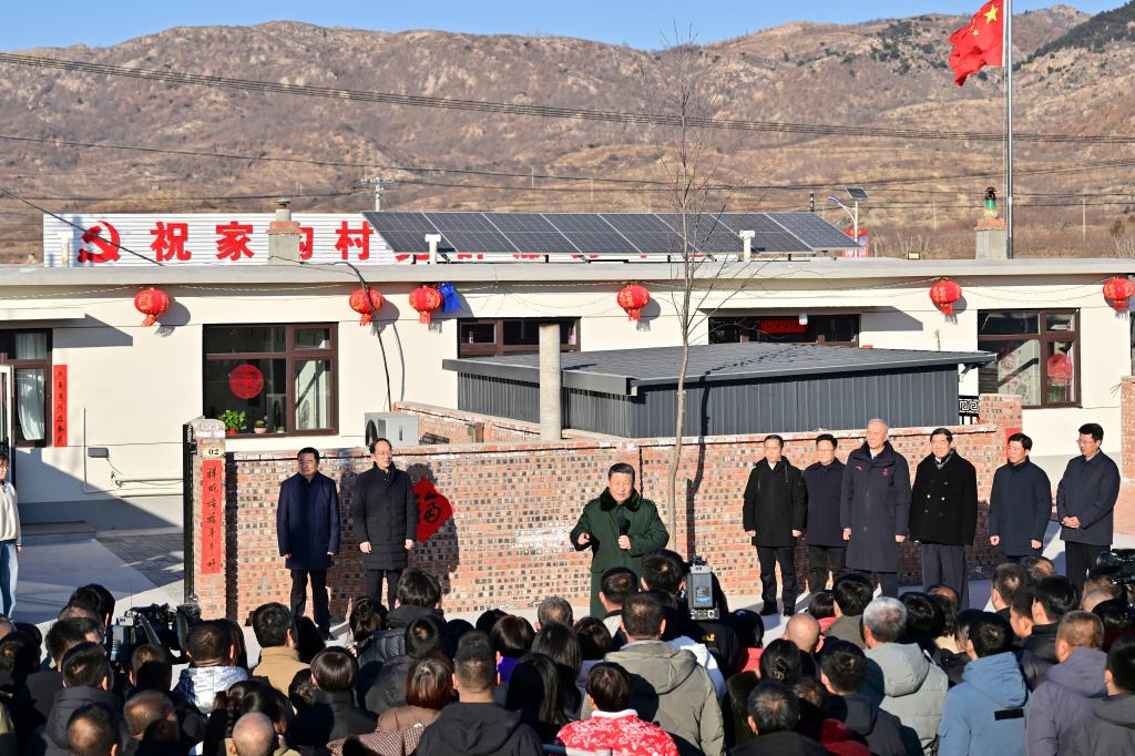 El presidente chino, Xi Jinping, también secretario general del Comité Central del Partido Comunista de China y presidente de la Comisión Militar Central, conversa con aldeanos, en la aldea de Zhujiagou, en el distrito de Suizhong de la ciudad de Huludao, en la provincia de Liaoning, en el noreste de China, el 22 de enero de 2025. Xi desafió al frío el miércoles para visitar a las personas afectadas por inundaciones en una aldea en la provincia de Liaoning, en el noreste de China. (Xinhua/Zhai Jianlan)