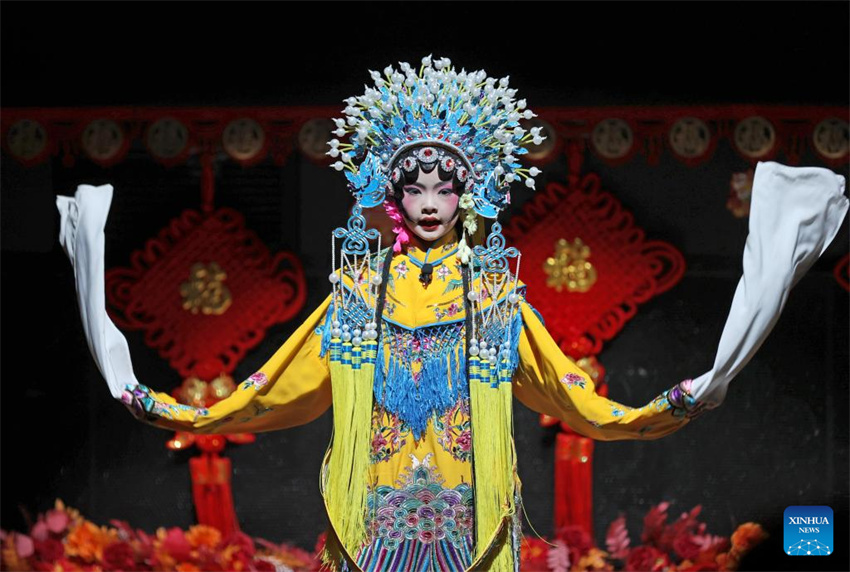 Una chica interpreta la Ópera de Pekín durante la Gala del Año Nuevo Chino de la Asociación de Estudiantes y Académicos Chinos del Reino Unido (CSSAUK, por sus siglas en inglés) en Londres, Gran Bretaña, el 21 de enero de 2025. El Año Nuevo chino cae el 29 de enero de este año y dará comienzo el Año de la Serpiente. (Xinhua/Li Ying.)