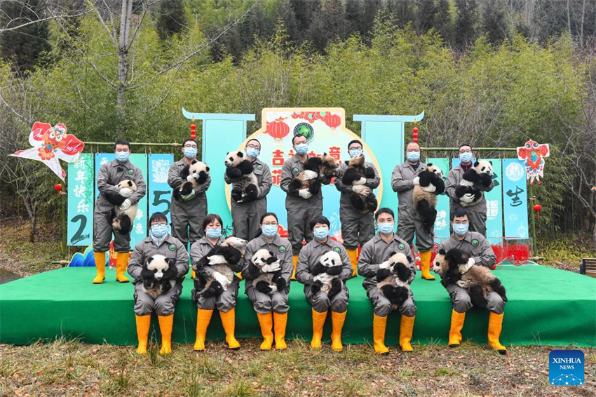 Veinticinco cachorros de panda gigante se reunieron el jueves en dos bases de cría de la provincia suroccidental china de Sichuan para felicitar la Fiesta de la Primavera al público de todo el mundo.