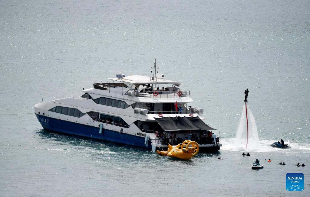 Turistas toman un yate para divertirse, en Sanya, en la provincia de Hainan, en el sur de China, el 13 de febrero de 2025. La industria del turismo en yates ha experimentado un auge en Sanya de Hainan, y las autoridades marítimas locales han implementado diversas medidas para garantizar experiencias de viaje seguras para los turistas en el mar. (Xinhua/Zhao Yingquan)