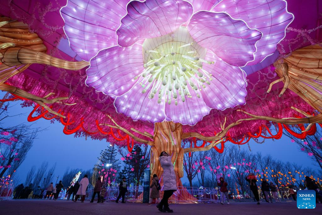 Imagen del 11 de febrero de 2025 de personas visitando una feria de linternas en el Parque Wenyuhe de Beijing, en Beijing, capital de China. (Xinhua/Ju Huanzong)