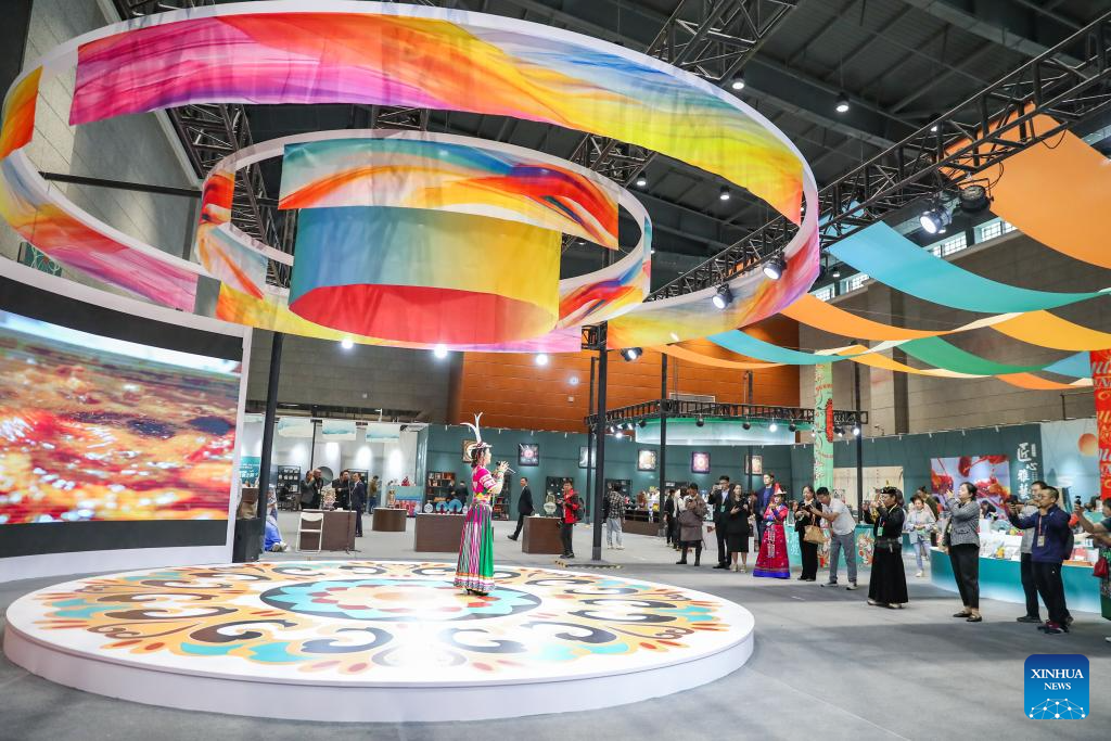 Turistas visitan la 7.ª Exposición Cultural Internacional de la Ruta de la Seda en Dunhuang, provincia noroccidental china de Gansu, el 21 de septiembre de 2024. Hace unos 2000 años, Dunhuang era un punto clave de la antigua Ruta de la Seda. La seda y el té chinos pasaban por esta puerta de camino a otros países, mientras que productos agrícolas como uvas, zanahorias y granadas se abrían camino hacia China.
