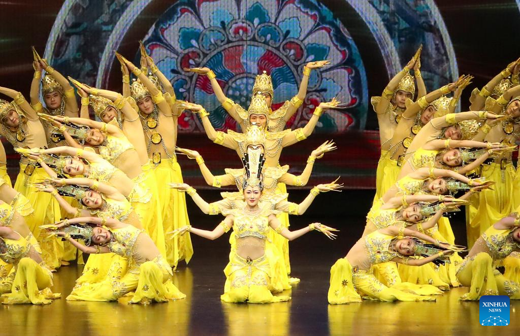 Durante la VII Exposición Cultural Internacional de la Ruta de la Seda, en Dunhuang, provincia noroccidental china de Gansu, el 20 de septiembre de 2024, se representa un espectáculo de música y danza tradicionales de Dunhuang. Hace unos 2000 años, Dunhuang era un centro clave de la antigua Ruta de la Seda. La seda y el té chinos pasaban por esta puerta de camino a otros países, mientras que productos agrícolas como uvas, zanahorias y granadas se abrían camino hacia China.