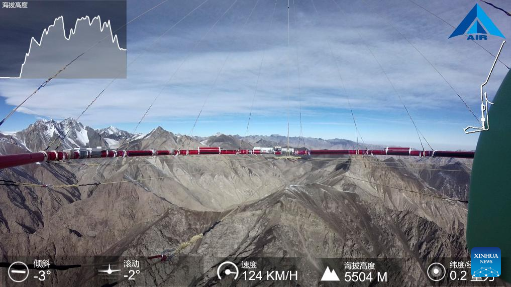 Imagen del 28 de diciembre de 2024 del sistema de detección magnetotelúrico aerotransportado por helicóptero funcionando en Hetian, en la región autónoma uygur de Xinjiang, en el noroeste de China. El primer sistema de detección magnetotelúrico aerotransportado por helicóptero de China se ha aplicado con éxito a un proyecto de construcción ferroviaria en una meseta, informó el martes el Instituto de Investigación de Información Aeroespacial (AIR, por sus siglas en inglés) de la Academia de Ciencias de China. (Xinhua/Huang Ling)
