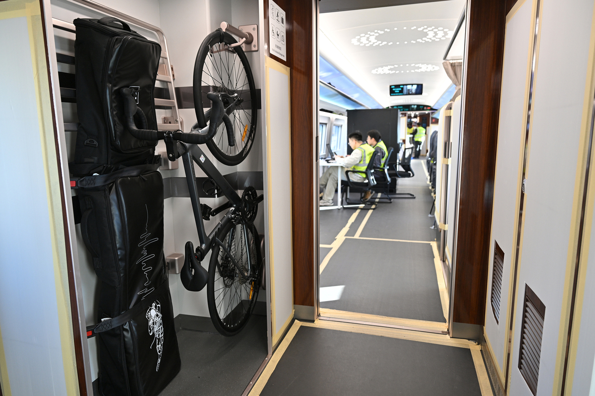 Área de almacenamiento multifuncional del prototipo del tren bala CR450 en Beijing, 25 de febrero de 2025. [Xinhua]