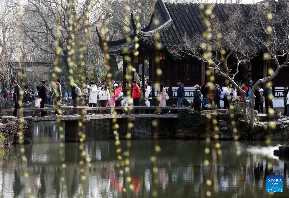 Turistas visitan el Jardín del Administrador Humilde, en Suzhou, en la provincia de Jiangsu, en el este de China, el 6 de marzo de 2025. (Xinhua/Hang Xingwei)
