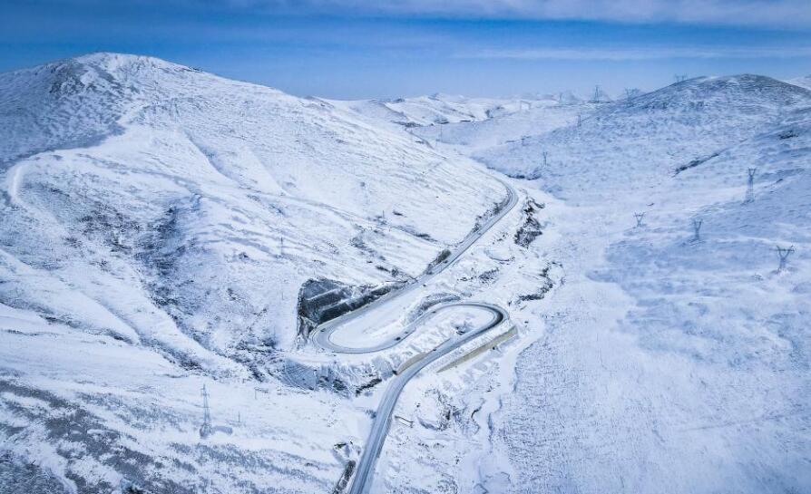 Una foto aérea tomada por un dron el 8 de marzo de 2025 muestra el paisaje nevado del distrito de Gande de la prefectura autónoma tibetana de Golog, en la provincia noroccidental china de Qinghai. (Xinhua/Qi Zhiyue.)