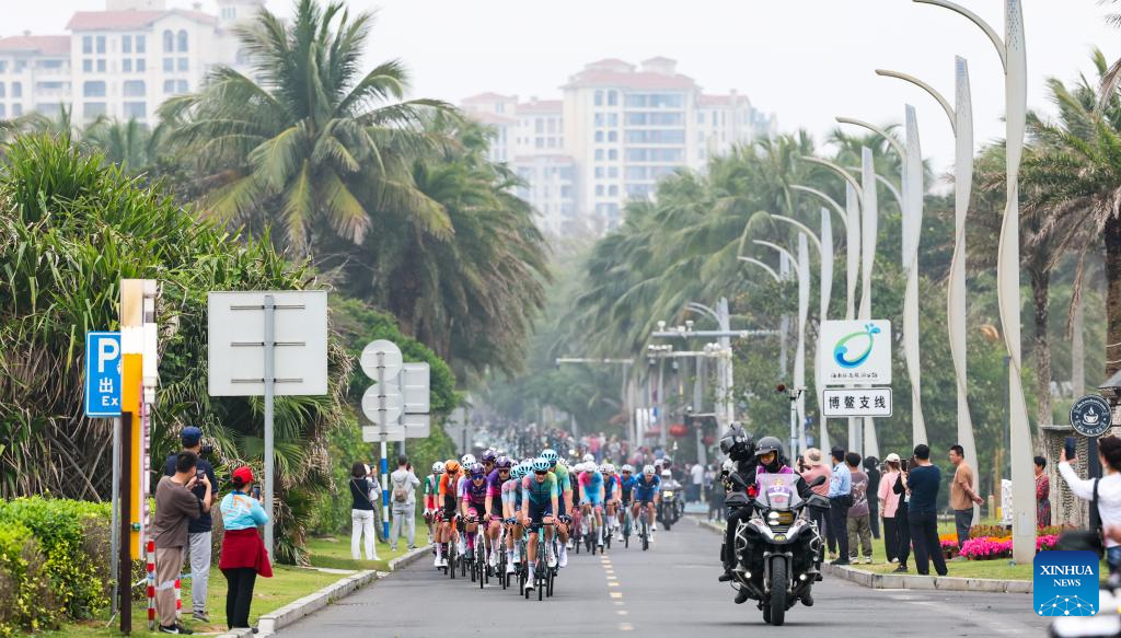 Ciclistas compiten durante la 1.ª etapa de la 16.ª Vuelta Ciclista a Hainan, en Qionghai, provincia meridional china de Hainan, el 7 de abril de 2025. (Xinhua/Yang Guanyu.)
